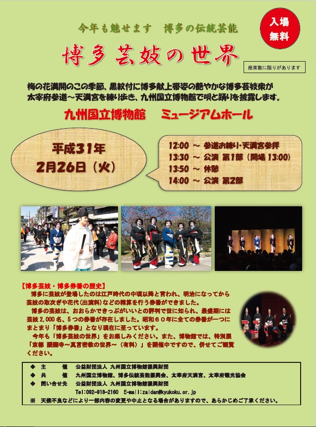 ●共 催 : 九州国立博物館、博多伝統芸能振興会、太宰府天満宮、太宰府観光協会